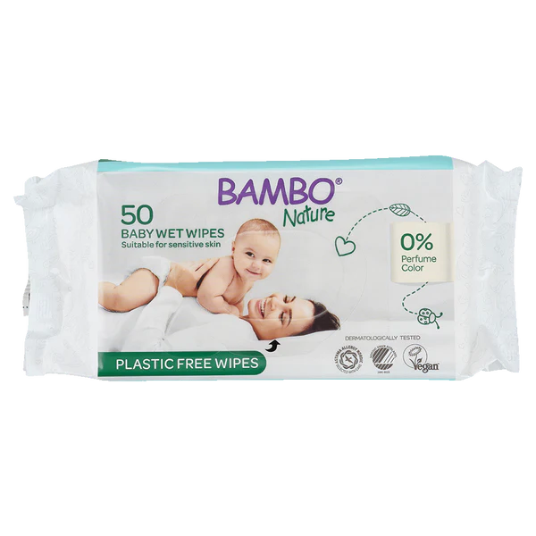 Biodegradable, plastic-free bamboo baby wipes. Natural, unscented, and safe for daily use. 80 wipes per pack.